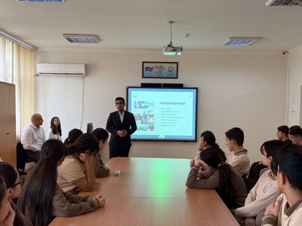 İnteraktiv müzakirələr şəklində keçən görüşdə məktəbin rəhbərliyi, müəllim və şagird heyəti və məktəb psixoloqu iştrak edib.