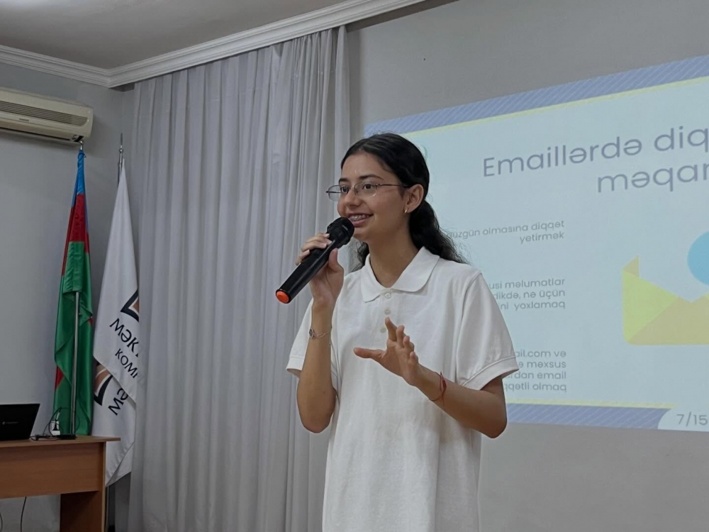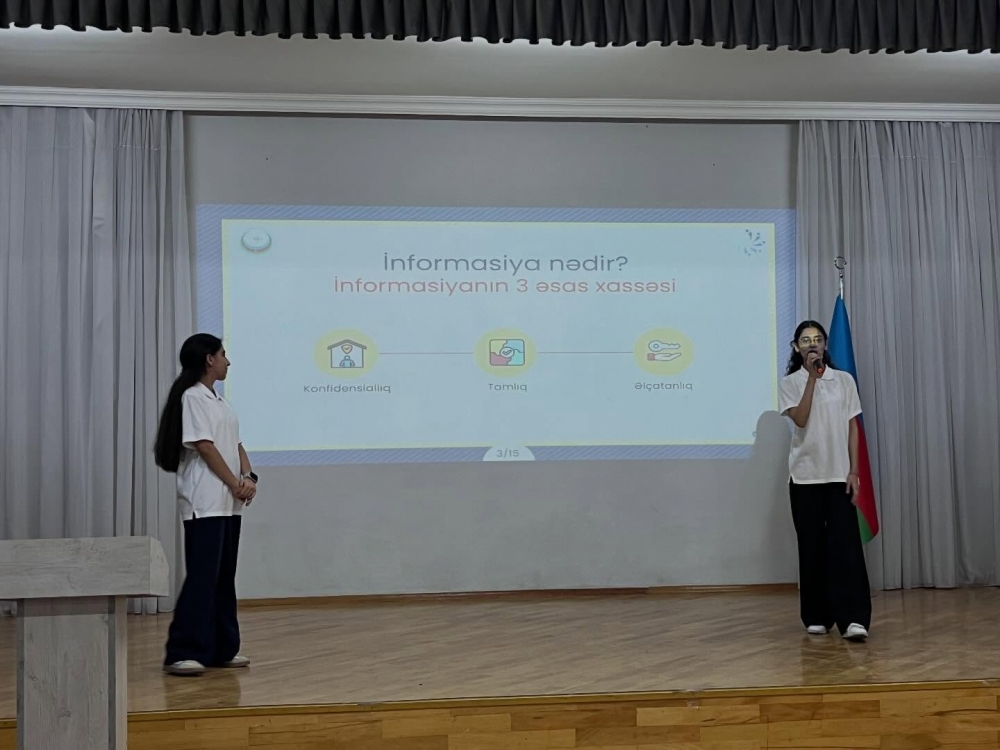 Daha sonra Uşaq Səfirlər Məclisinin üzvləri Fatimə Fətəliyeva və Mədinə Qəhrəmanova tərəfindən informasiya təhlükəsizliyi mövzusunda təlim keçirilib.