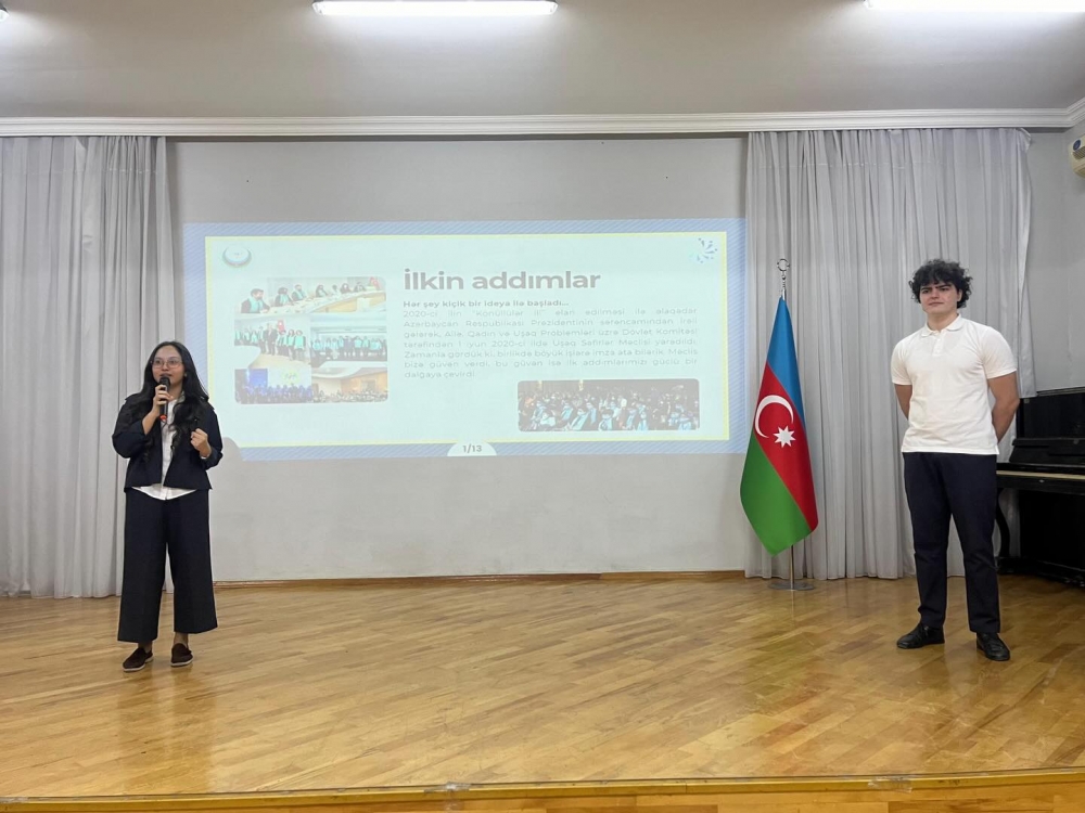 24 aprel 2026-cı il tarixində Uşaq Səfirlər Məclisinin üzvləri tərəfindən Gültəkin Əsgərova adına Məktəb Lisey Kompleksində şagirdlər üçün maarifləndirici tədbir təşkil olunub.