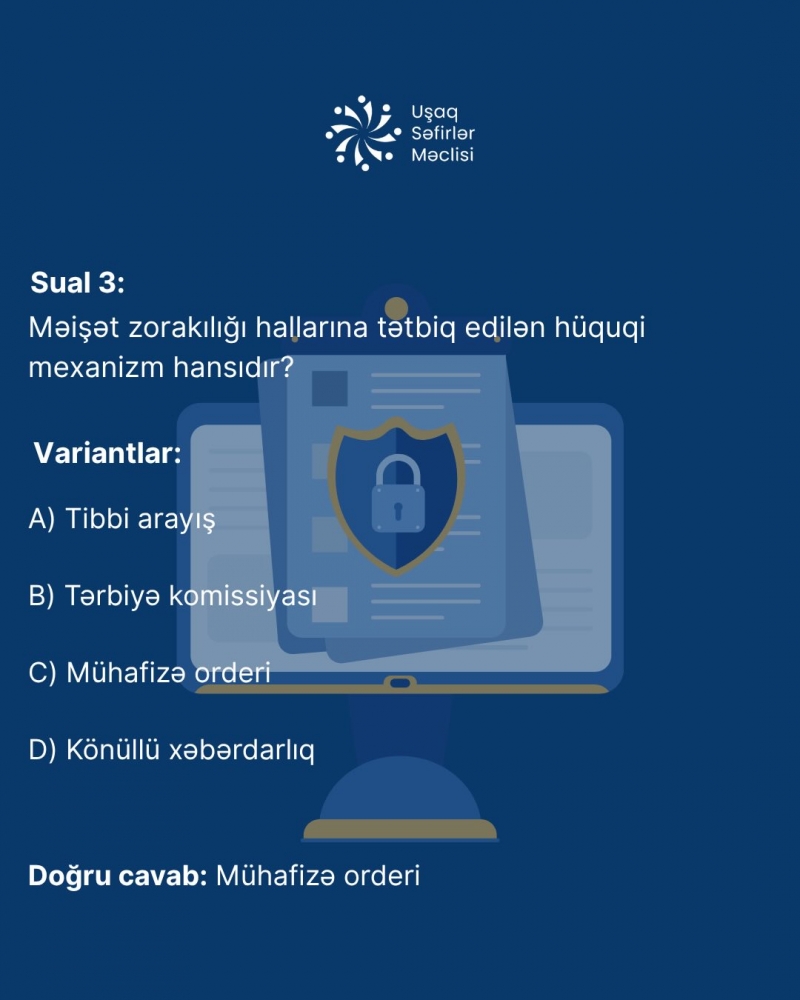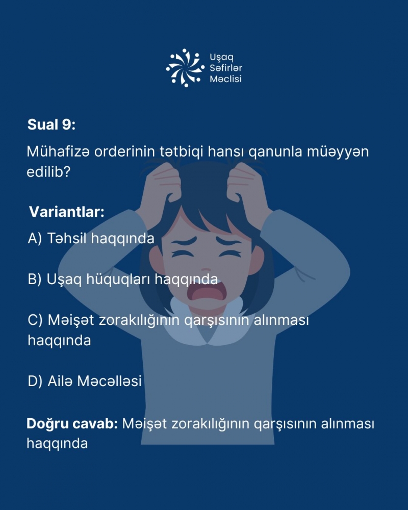 “Uşaq Hüquqları” üzrə maarifləndirici kursun doqquzuncu modulunun suallarını va cavablarını sizinlə bölüşürük!
